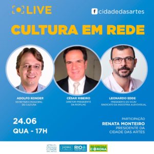 Nesta quarta-feira, o presidente da RioFilme, Cesar Miranda Ribeiro, conversa com o Secretário Municipal de Cultura, Adolfo Konder, e o